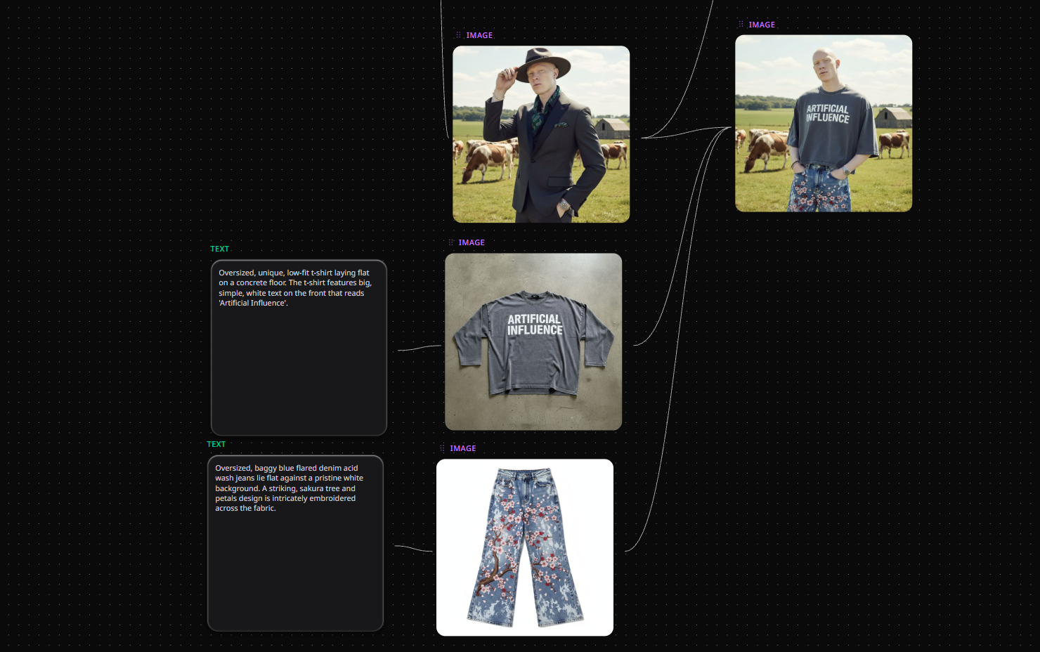 Drop in source visuals and prompts, then organize everything into one guided canvas.