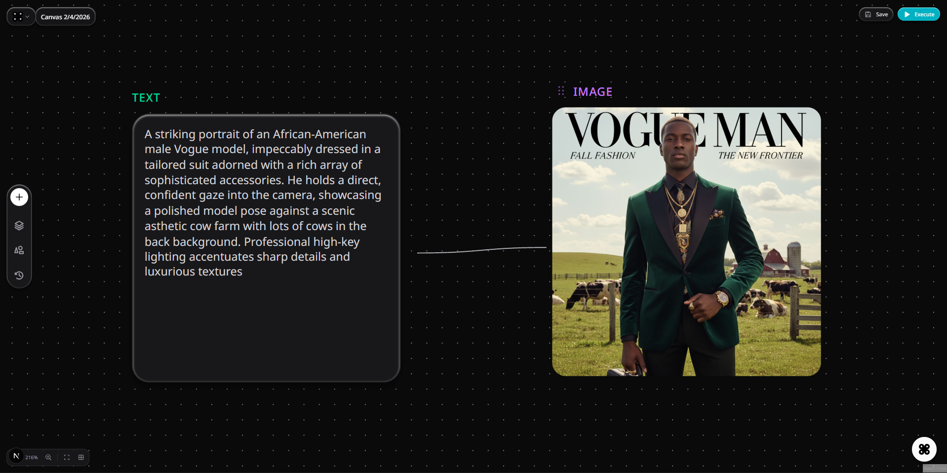 Describe your vision in detail and generate striking, editorial-style portraits and model looks on the canvas.